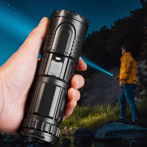 হাই পাওয়ার ওয়াটারপ্রুফ LED রিচার্জেবল টর্চ লাইট উইথ পাওয়ার ব্যাংক